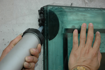 เริ่มยิงซีลีโคนเข้าไปในร่องกระจก